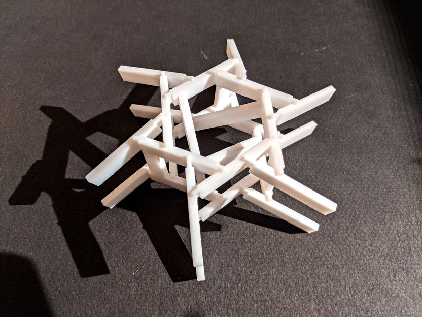 Our study focused on optimizing the system through easily mortise and tenon joinery that would alleviate the need to compensate for varying material thicknesses as well as post-processing of the members. Along with this, we worked to understand the ways in which we could begin to couple these reciprocal frame systems together through the addition of an interstitial layer composed of lateral bracing. Forming a pseudo space frame, this thickened assembly provides additional structural depth and stiffness allowing for a greater span and weight capacity as compared to a typical reciprocal frame system. These studies would go on to help in the design of our final outdoor classroom.